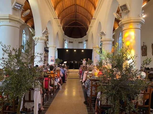 Elle a été réalisée en chêne par les ateliers Colleson, sculpteurs à Wormhout et fut mise en place en 1895. Entre les piliers sculptés, le décor des panneaux ajourés évoque l’Eucharistie (épis de blé, grappes de raisin, calices, pélican, l’agneau et l’ostensoir. Elle a retrouvé sa place initiale, après remise en état, le 30 mars 2023. Un des panneaux a été placé sur le devant de l’autel.