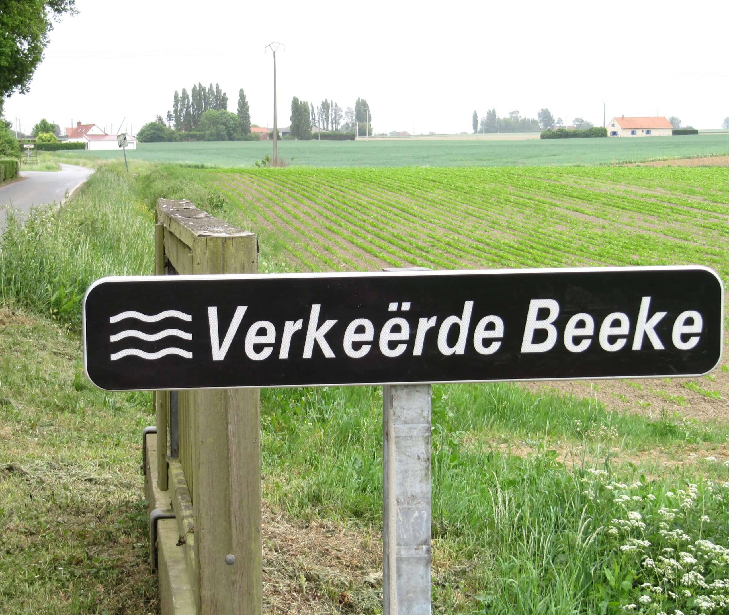 Le conseil municipal n’a pas souhaité modifier les panneaux d’entrée de village en flamand, mais vous pouvez retrouver quelques panneaux mentionnant le nom des becques comme la Verkeërde Beeke, panneau posé récemment sur la Route d’Esquelbecq.